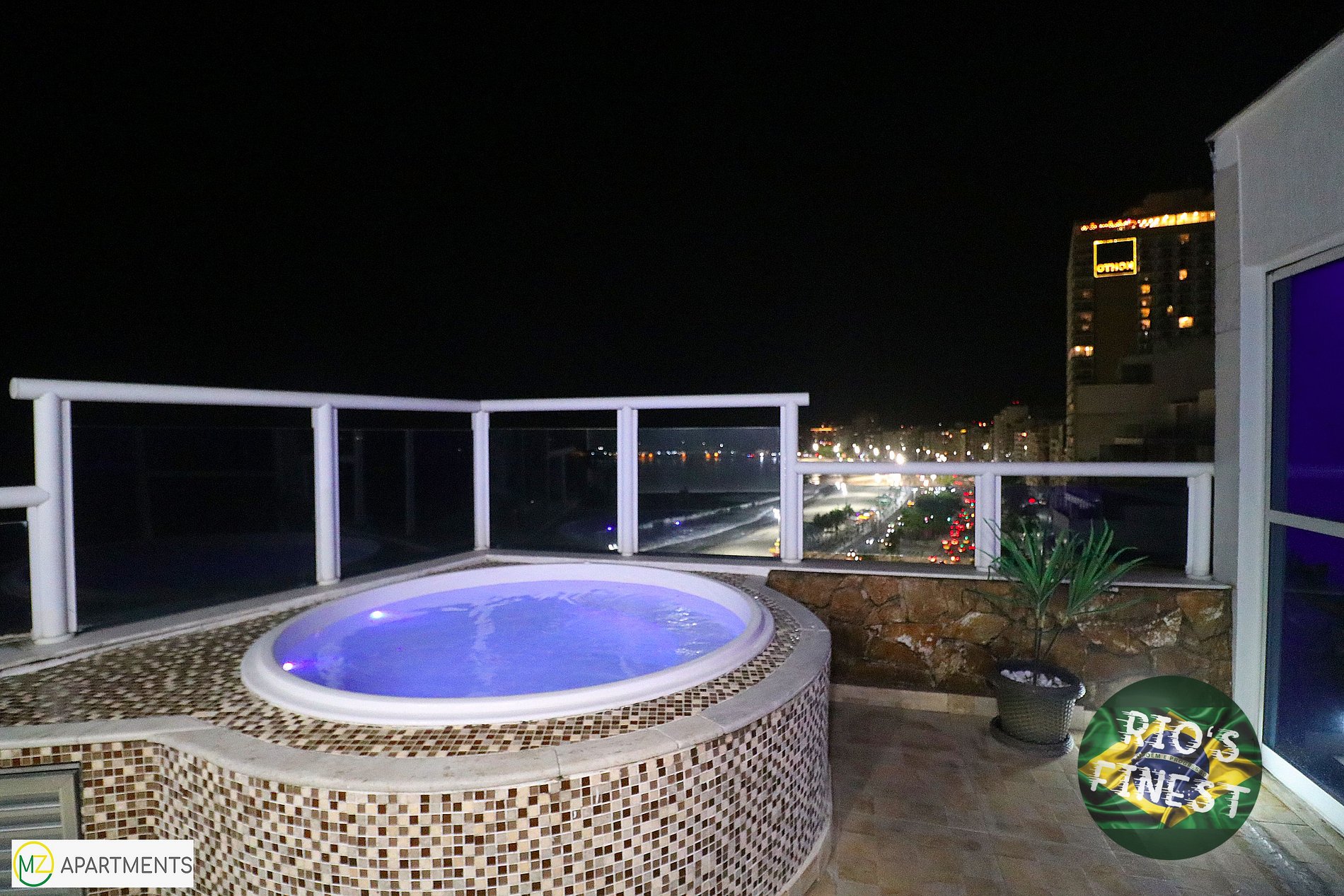 Penthouse with 3 bedrooms, terrace and private Jacuzzi for up to 6 people and frontal ocean view for the Copacabana beach. Located on the 13th floor of a secure building with 24-hour doorman, it has a privileged location that offers supermarkets, ATMs, bars, restaurants and public transportation. It is a great option for couples, families and groups of friends.