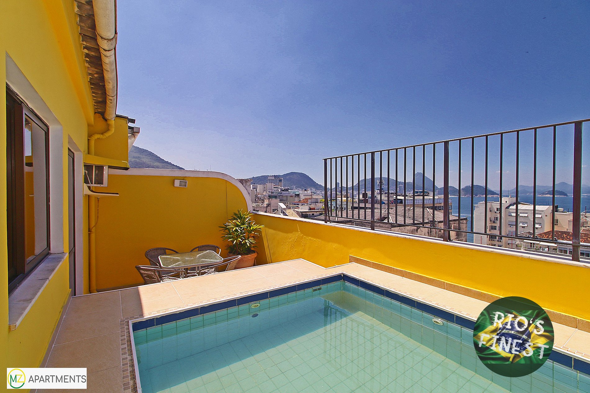 Duplex Penthouse with terrace and private pool for 6 people, in Posto 6, 200 meters from Copacabana beach and 700 meters from Ipanema beach. Close to banks, shops, bars and restaurants and public transport. Very secure building with security cameras and 24 hour doorman. Located on the 11th floor, it is a great option for 2 couples, singles, or a group of friends. Parking space available for 1 vehicle.