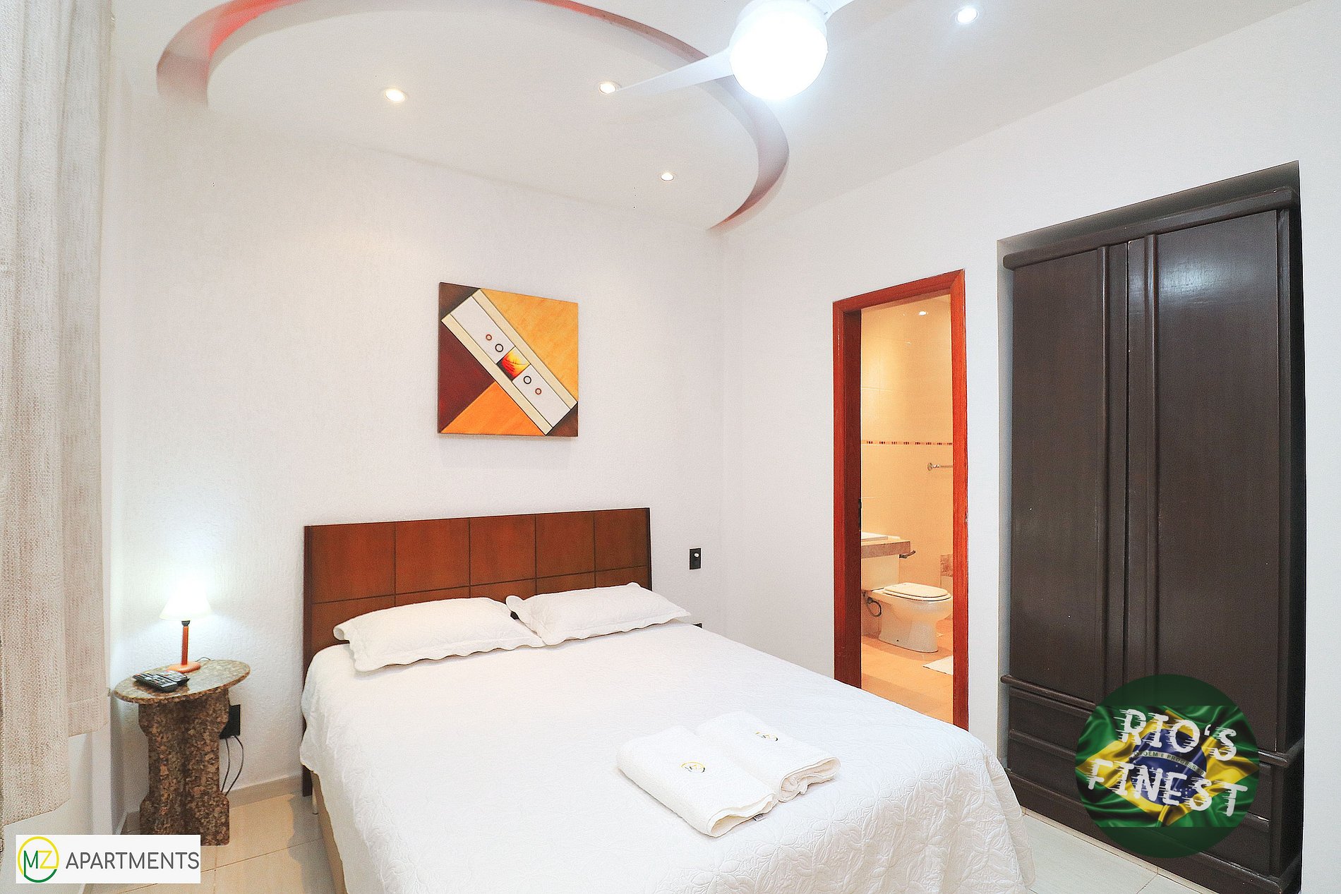 The three bedrooms (suites) with their own individual bathrooms are equipped with double beds, wardrobe, ceiling fan, SmartTV and air conditioning. Two bedrooms face the back of the building (quiet) and the third bedroom offers a wonderful view of the sea and Copacabana beach.
