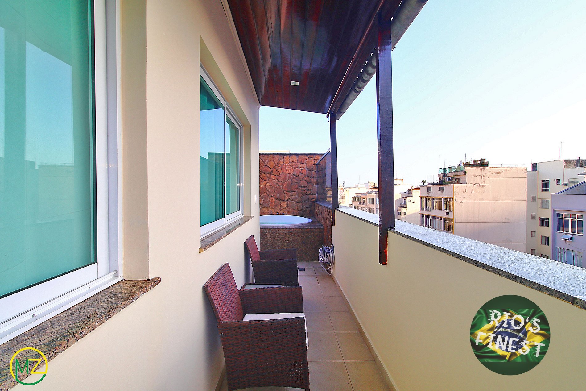 Penthouse de 3 cuartos y hermosa terraza (con hidromasaje) a una cuadra de la playa, en Posto 5 de Copacabana. Capacidad para 8 personas. Ubicado en el piso 12 de un edificio seguro con portero 24 horas. A sólo 150 metros de la famosa playa de Copacabana. La ubicación ofrece infraestructura completa para un turista, con supermercados, cajeros automáticos, restaurantes y transporte público alrededor. Es el lugar perfecto para parejas, familias o grupos de amigos.