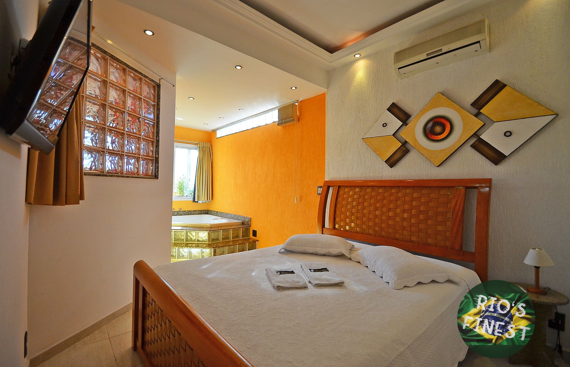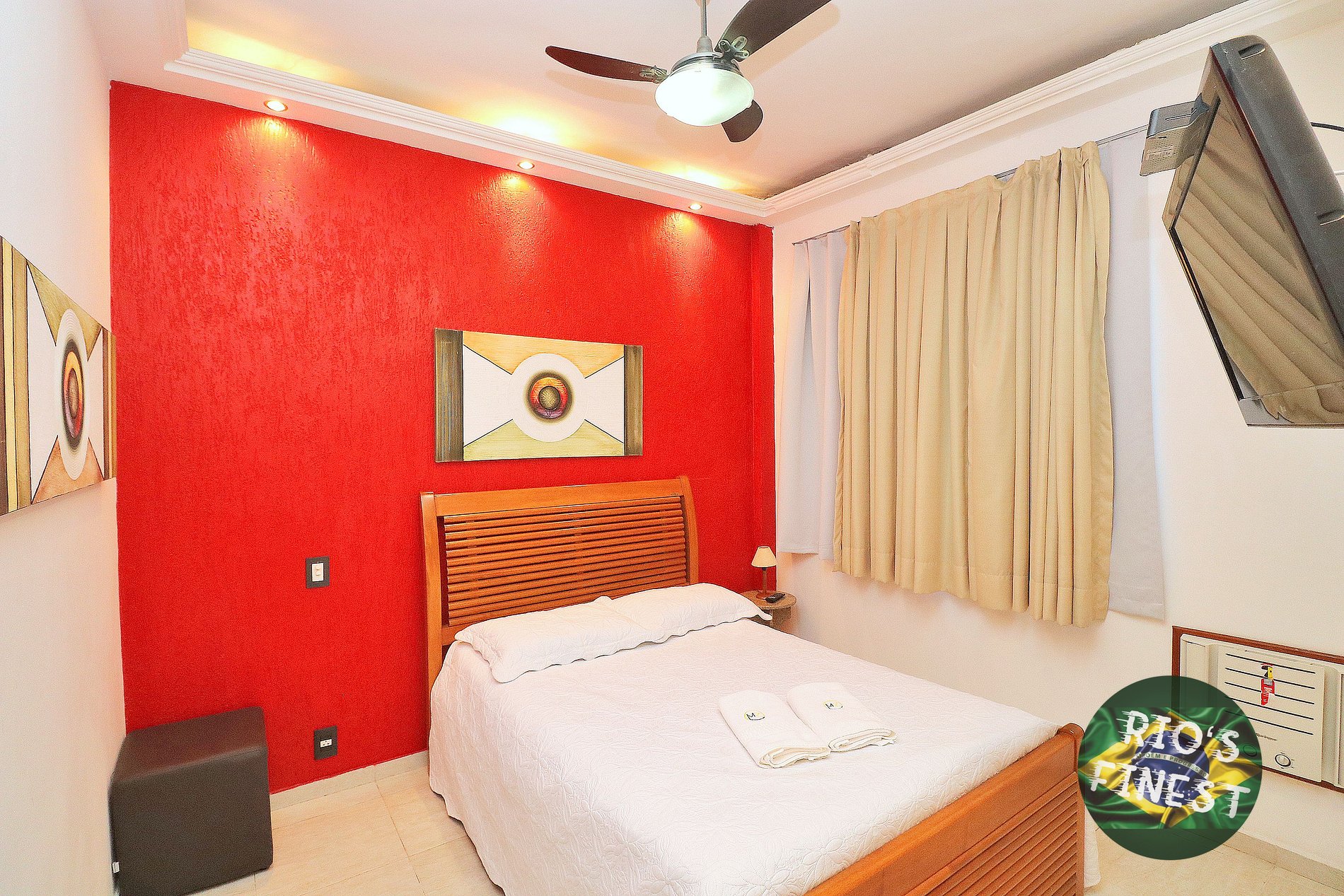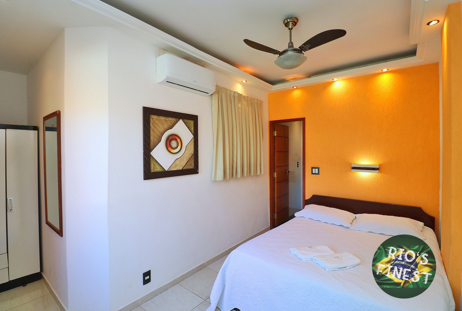 Todos os quartos estão equipados com cama de casal tamanho QUEEN, pequeno guarda-roupa, SmartTV, ventilador de teto e ar condicionado. Um dos quartos ainda tem uma banheira para relaxar.