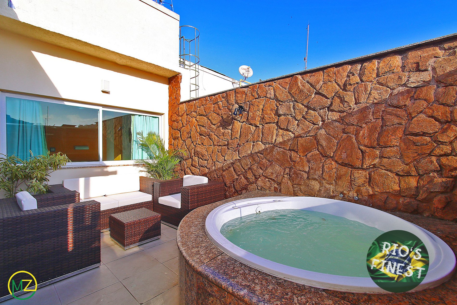 No terraço, vc tem um sofa e 2 cadeiras, uma churrasqueira portátil e uma linda JACUZZI com água aquecida para desfrutar sua hospedagem.